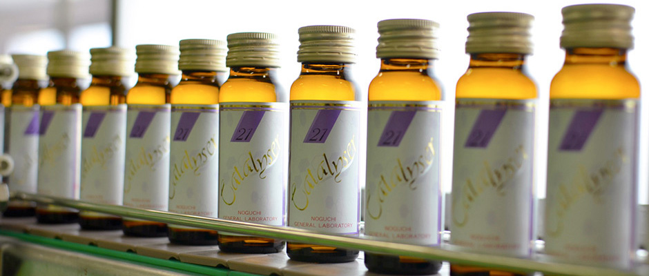 野口総合研究所・生駒工場は2004年に完成し、「カタライザー21」などのドリンクやサプリメント、化粧品などを製造しています。2020年には品質マネジメントシステムの国際規格ISO9001を取得し、商品開発から販売まで一貫した体制を確立し、高品質で安全な商品をお客様のもとへお届けしています。