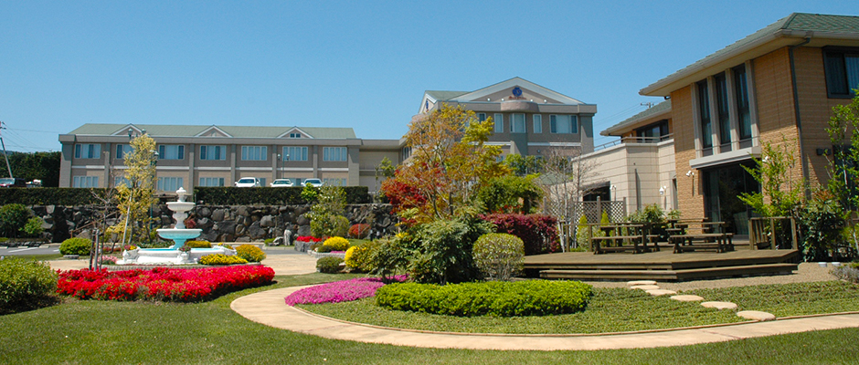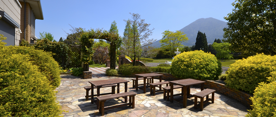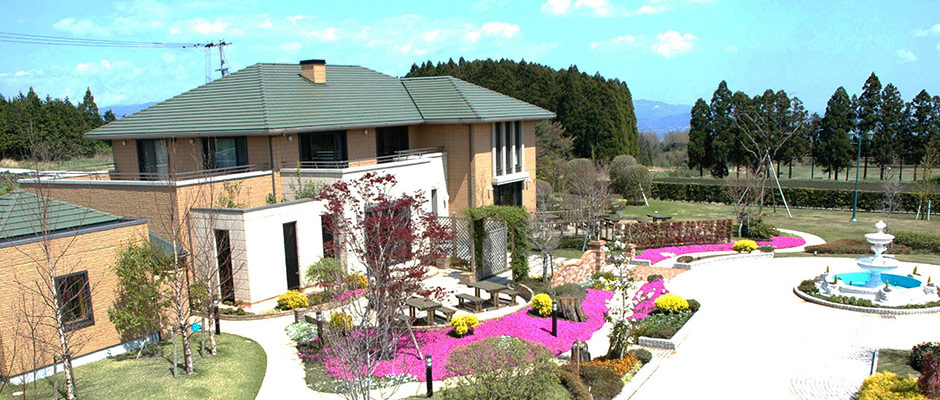 生駒工場に隣接するゲストハウスは、工場見学や各種セミナーで宮崎を訪れるお客様にご利用いただいております。露天風呂やサウナ、キッチン、リビング、客室などがあり、霧島連山のパノラマを眺めながら、心身ともに癒される空間となっています。