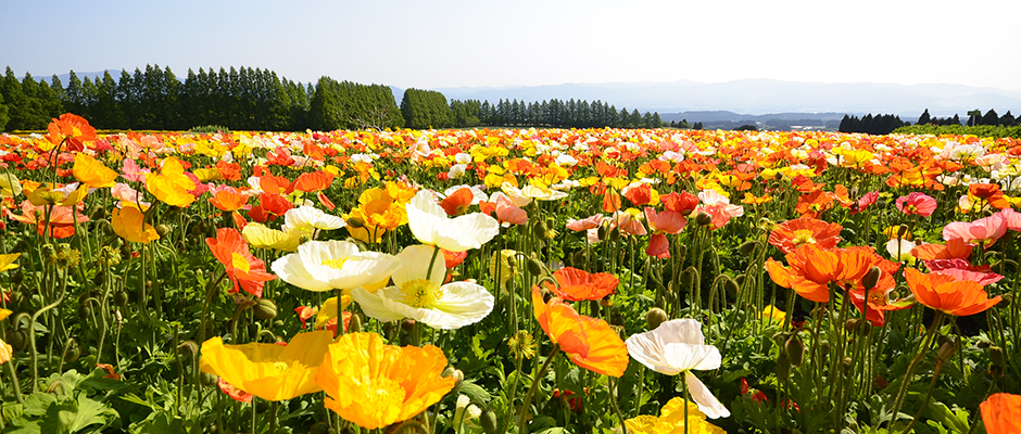 生駒高原は、春の菜の花、ポピー、秋のコスモスと年間を通して花に彩られ、澄んだ空気と清らかな水に恵まれています。