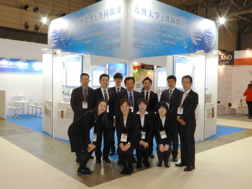 自社工場製造の化粧品原料「フムスエキス」を主原料にした化粧品、基礎化粧品「アンシェ」シリーズ、「アキュアン」シリーズ、ミネラルウォーター「銀河水」の商品紹介をはじめ、九州大学との共同研究成果の展示、お客様商談会を行いました。